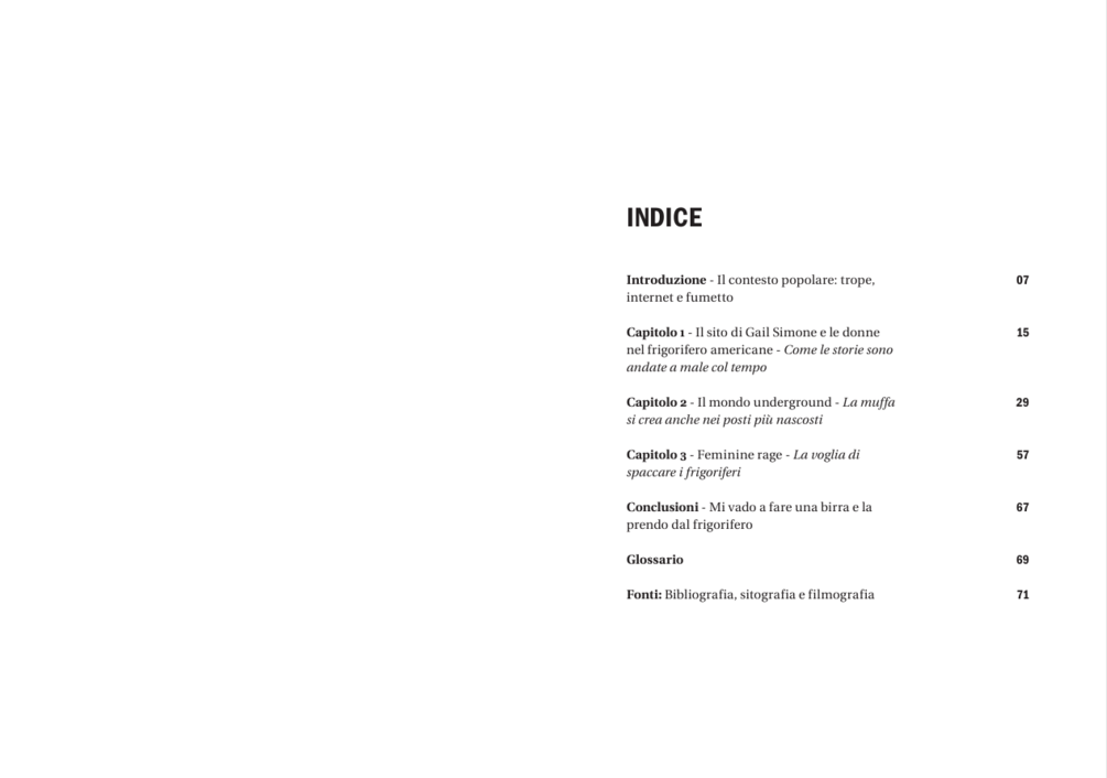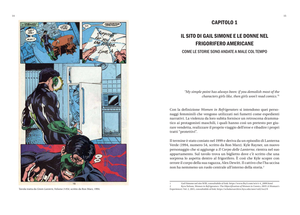 Tesi di laurea che analizza il trope Women in the Refrigerators, che prende il nome da un numero di Lanterna Verde.